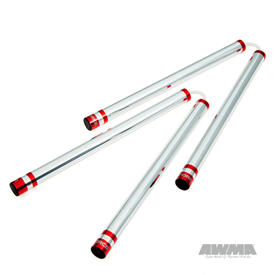 Made of ultra-light wood and individually hand cut and sanded before being hand decorated with chrome and color. Built for demonstration only. Not recommended for fighting, for the nunchaku may be damaged upon contact with another object. Nunchakus are 11&quot long with a 2&quot cord and sold in sets of 2 pair.