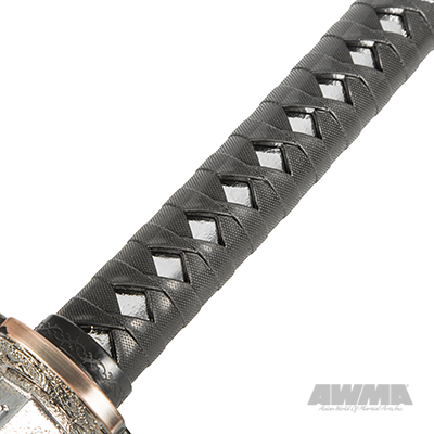 Made of Acrylonitrile butadiene styrene polymers. Approximately 20 oz. and 41.5 in. long. Intricate dragon etchings throughout the tsuba. Rubber grip to ensure safe practicing. All surfaces are electro plated for guaranteed satisfaction.