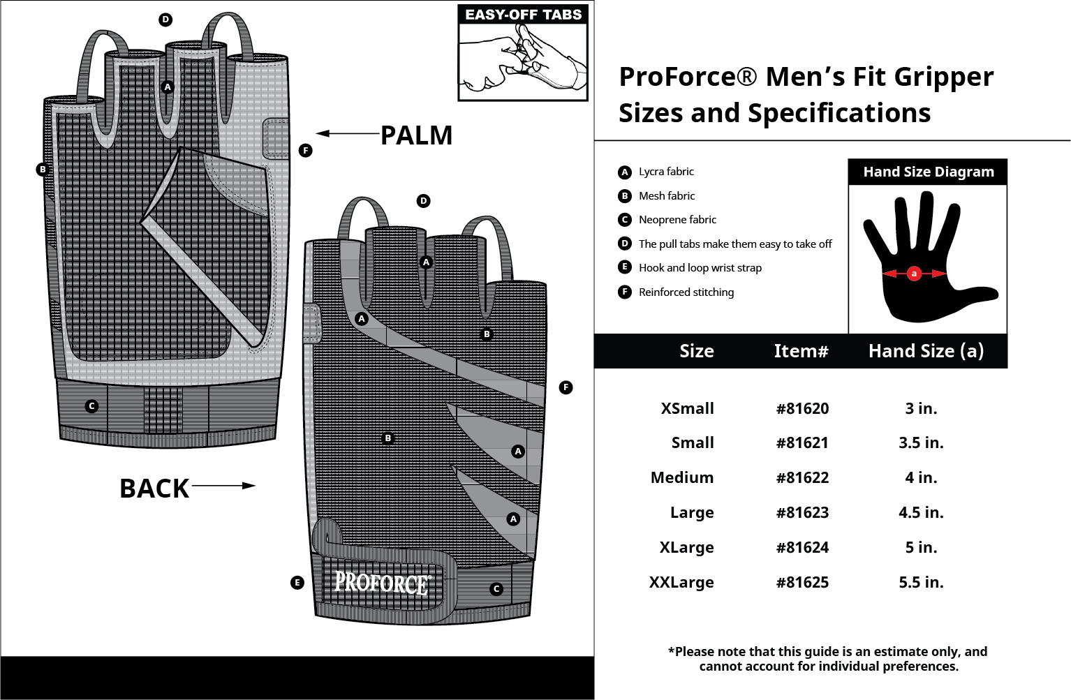 The complete glove featuring a unique combination of Lycra, Mesh, Neoprene, and Amara liner make this the FIT gripper, plus the pull tabs make them easy to take off