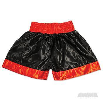 Features:- Soft, smooth satin fabric.- Cut extra wide with 3 inch elastic drawstring waistband.- Authentic Thai lettering applique: "Muay Thai".- Black with red trim.- Sizes xx-small - xx-large.