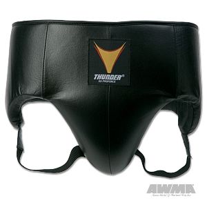 The ProForce® Thunder Deluxe Groin Protector features a high grade leather filled with a lightweight dense foam padding. The wrap around design helps to protect the kidneys, liver, groin, abdomen and hips. A tuck under cup provides maximum protection and comfort. An elastic waistband with a lace-tie up provides a snug fit. Fits easily under trunks.