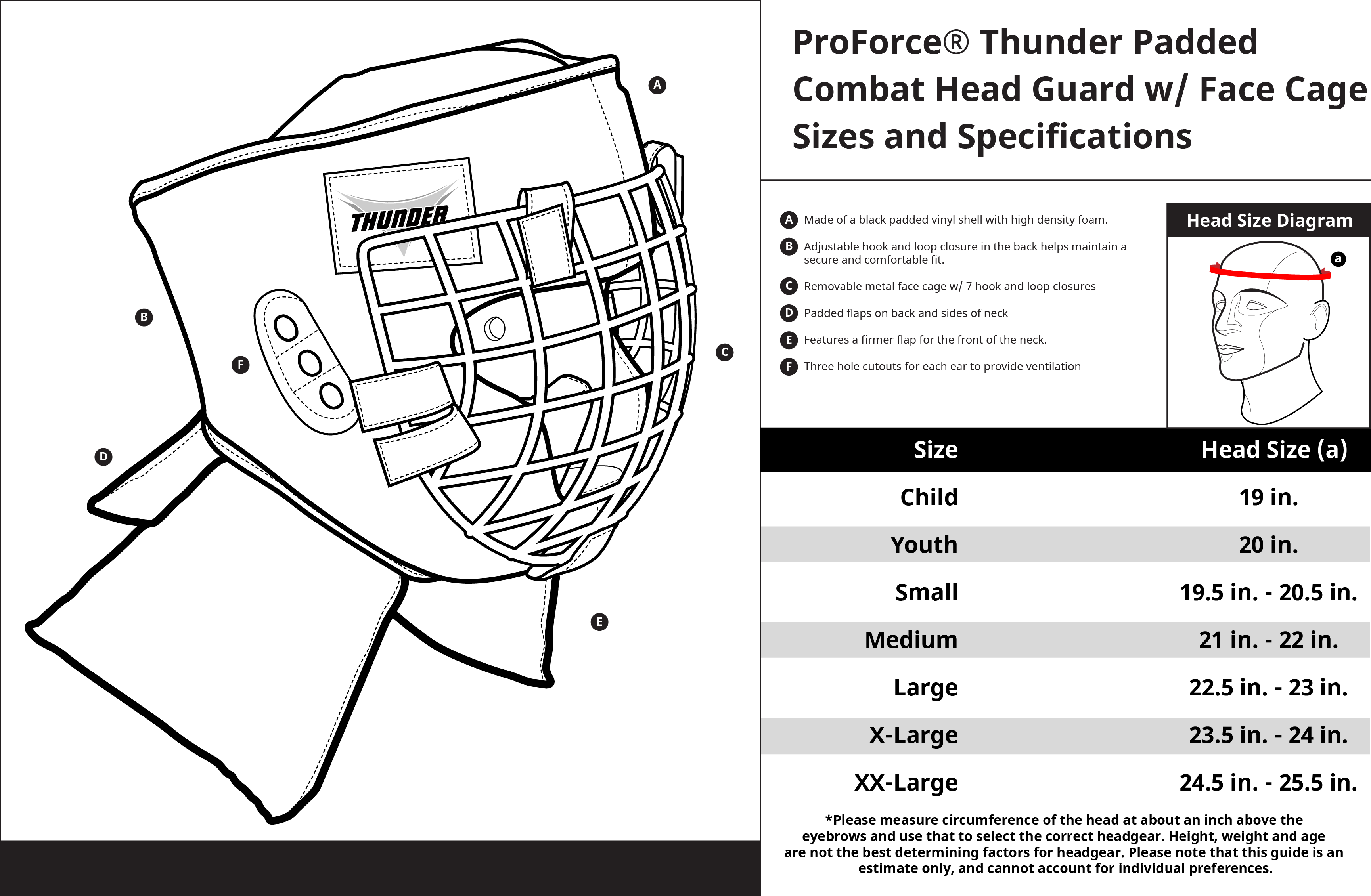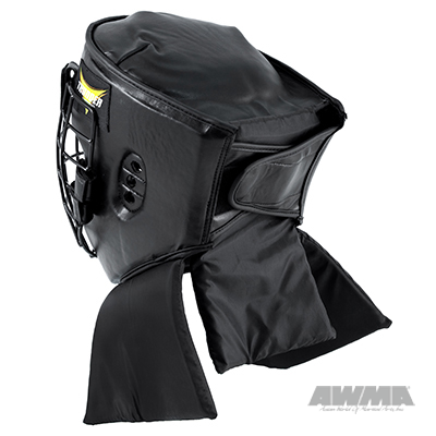 The ultimate protection for your head and neck when sparring or boxing. Made of a black padded vinyl shell with high density foam. Adjustable hook and loop closure in the back helps maintain a secure and comfortable fit. Metal face cage is removable and holds in place with 7 hook and loop closures. Features padded flaps on the back, sides, and front of the neck and a firmer flap for the front of the neck. Three hole cutouts for each ear provide proper ventilation.
