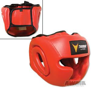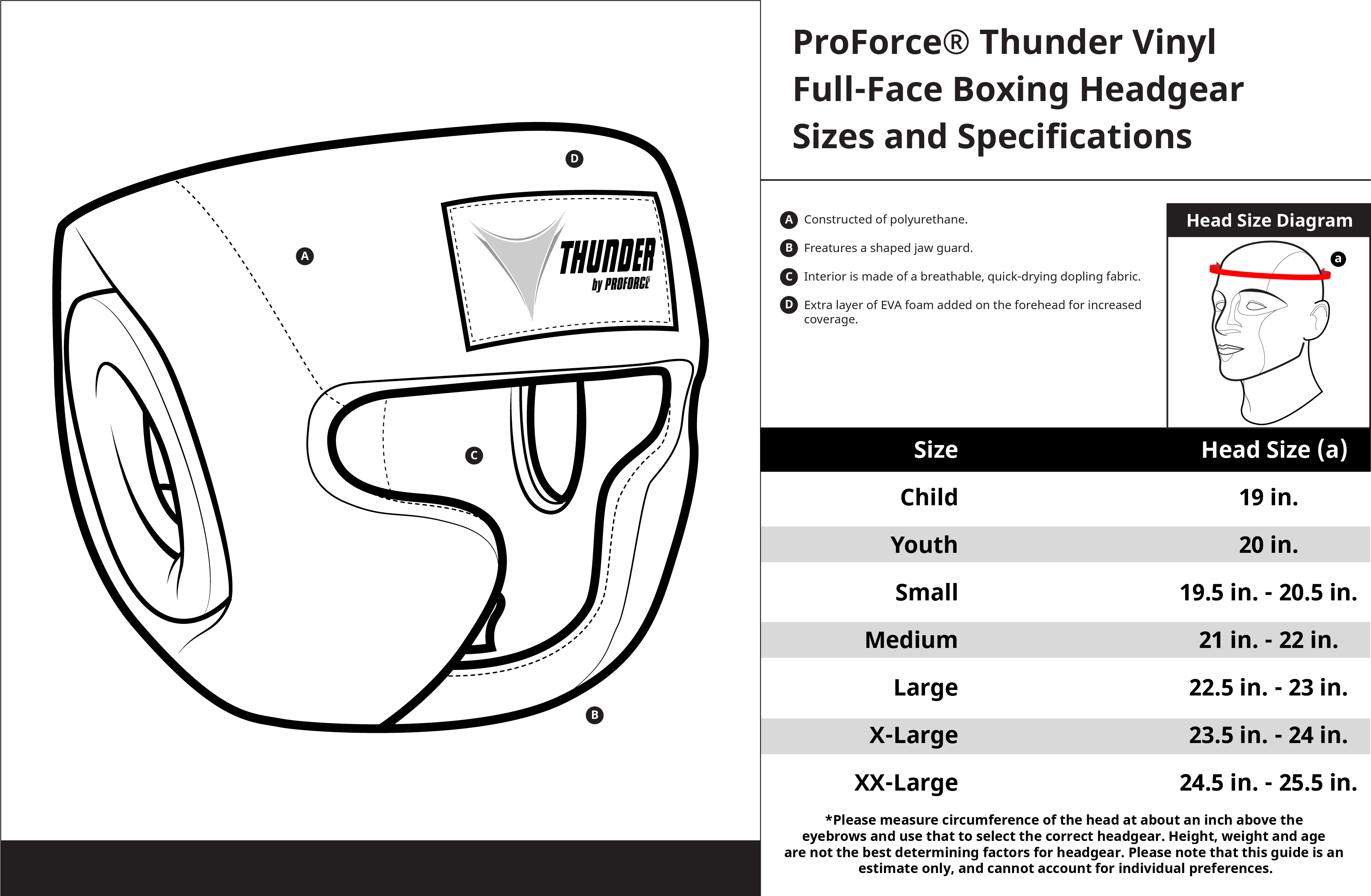 Constructed of polyurethane with a shaped jaw guard and backside hook/loop closure. Interior is made of a breathable, quick-drying dopling fabric with a super-soft, shock-absorbing EVA foam padding and an extra layer of EVA foam added on the forehead for increased coverage.