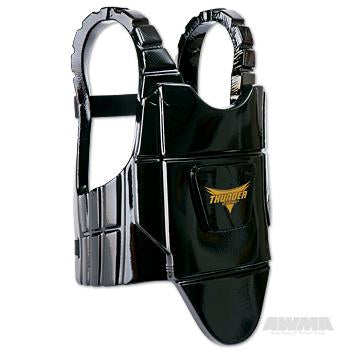 "Fast, functional, comfortable, safe and good looking," describe the ProForce® Thunder Chest Guard. Once the rear straps are adjusted for the first time, students can put on this chest guard like a jacket (in a matter of seconds), which closes in the front with a hook and loop fastener.
