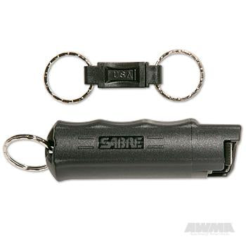 Carry your pepper spray in a case to help prevent accidental firings. Easy to use lock/unlock feature. Be prepared, so put your keys on the key ring when walking alone, entering buildings, hallways, elevators, parking lots, etc.Easy snap on/off key ring for your convenience. Fires approximately 30 stream shots a distance of 8 to 12 feet. Sabre contains a unique formula of CS Military Tear Gas, Red Pepper, and an ultra violet dye for suspect identification. CS Military Tear Gas is an irritant which causes a severe burning sensation in the eyes, tearing, coughing and difficulty in breathing. CS Military Tear Gas is so effective that it was chosen in 1959, and still is today, the number one riot control agent of the US Armed Forces! Sabre's CS Tear Gas and Red Pepper concentration is the strongest allowed by law.